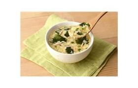 原材料:液全卵(鶏卵(国産))、しょうゆ(大豆を含む)、チキンエキス、デキストリン、食塩、たん白加水分解物、香辛料、具(かに風かまぼこ(小麦・かにを含む)、わかめ、ねぎ)/加工でん粉、調味料(アミノ酸等)、増粘多糖類、酸化防止剤(ビタミンE)、着色料(ベニコウジ色素)
