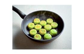 皮にも具にも国産ほうれん草を使った、緑色が鮮やかなギョーザです。