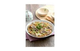原材料:桃豚小間切れ(秋田県産)、ごぼう、玉ねぎ、人参、しめじ、三つ葉 添付【つゆ(希釈用)】しょうゆ(国内製造)、砂糖、食塩、かつおエキス、こんぶエキス/調味料(アミノ酸等)、(一部に小麦を含む) 原料原産地:桃豚小間切れ(秋田県産)