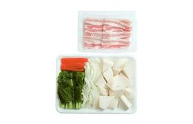 原材料:かぶら(国産)、豚肉、たまねぎ、こまつな、塩たれ〔水あめ、醤油、食塩、植物油脂、にんにく、香辛料/調味料(アミノ酸等)、酸化防止剤(ビタミンC)、酸味料、増粘剤(キサンタンガム)、ビタミンB1〕、赤パプリカ、(一部に小麦・ごま・ゼラチン・大豆・豚肉を含む)