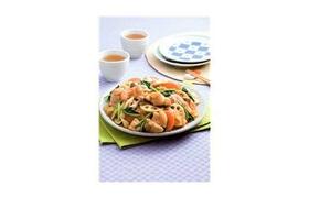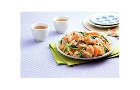 原材料:鶏肉、大根、玉ねぎ、ほうれん草、しめじ、人参、れんこん 添付【炒め物用調味料】砂糖(国内製造)、アミノ酸液、醤油、レモン果汁、発酵調味料/増粘剤(加工でん粉、キサンタンガム)、香料、カラメル色素、(一部に小麦を含む)【馬鈴しょ精製でん粉】馬鈴しょ原料原産地:鶏肉(鹿児島県産)