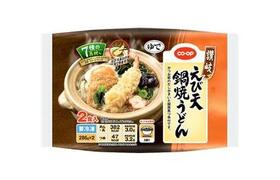 原材料:めん(小麦粉(国内製造)、食塩/加工でん粉)、具(えび天ぷら(衣(小麦粉、全卵粉末、食塩)、えび、揚げ油(なたね油))、味付油揚げ(油揚げ(大豆を含む)、糖類(砂糖、砂糖混合ぶどう糖果糖液糖)、しょうゆ、米発酵調味液)、味付しいたけ(しいたけ、砂糖、しょうゆ、みりん)、野菜(ほうれん草、ねぎ)、花麩、乾燥わかめ/安定剤(加工でん粉)、調味料(有機酸等)、トレハロース、乳化剤、凝固剤、膨張剤、着色料(ベニコウジ色素、クチナシ黄色素、クチナシ青色素)、酸化防止剤(ビタミンE))、つゆ(しょうゆ(大豆・小麦を含む)、糖類(砂糖、ぶどう糖)、食塩、かつおぶしエキス、混合削りぶし(さばぶし、いわしぶし)、混合だし(かつおぶし、さばぶし)、こんぶエキス、しいたけエキス/調味料(アミノ酸