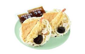 原材料:めん(小麦粉(国内製造)、食塩/加工でん粉)、具(えび天ぷら(衣(小麦粉、全卵粉末、食塩)、えび、揚げ油(なたね油))、味付油揚げ(油揚げ(大豆を含む)、糖類(砂糖、砂糖混合ぶどう糖果糖液糖)、しょうゆ、米発酵調味液)、味付しいたけ(しいたけ、砂糖、しょうゆ、みりん)、野菜(ほうれん草、ねぎ)、花麩、乾燥わかめ/安定剤(加工でん粉)、調味料(有機酸等)、トレハロース、乳化剤、凝固剤、膨張剤、着色料(ベニコウジ色素、クチナシ黄色素、クチナシ青色素)、酸化防止剤(ビタミンE))、つゆ(しょうゆ(大豆・小麦を含む)、糖類(砂糖、ぶどう糖)、食塩、かつおぶしエキス、混合削りぶし(さばぶし、いわしぶし)、混合だし(かつおぶし、さばぶし)、こんぶエキス、しいたけエキス/調味料(アミノ酸