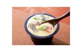 原材料:鶏卵(国産)、味付鶏もも肉、たけのこ水煮、しいたけ水煮、ぎんなん水煮、えだまめ(大豆を含む)、発酵調味料、食塩、砂糖、ボイルかに、しょうゆ、かつおぶしエキス(小麦を含む)、しいたけエキス、酵母エキス、こんぶエキス、焼あごエキス/調味料(有機酸等)