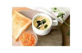 原材料:液全卵(鶏卵(国産))、しょうゆ(大豆を含む)、チキンエキス、デキストリン、食塩、たん白加水分解物、香辛料、具(かに風かまぼこ(小麦・かにを含む)、わかめ、ねぎ)/加工でん粉、調味料(アミノ酸等)、増粘多糖類、酸化防止剤(ビタミンE)、着色料(ベニコウジ色素)