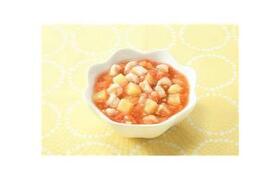 原材料:トマトピューレ(トマト(国産))、野菜(にんじん、たまねぎ)、大豆水煮(分別生産流通管理済み)、でん粉、チキンコンソメ