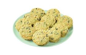 原材料:野菜(たまねぎ、かぼちゃ、にんじん、ほうれん草、ごぼう)(国産)、鶏肉(国産)、つなぎ(パン粉(小麦を含む)、でん粉)、豚脂、ひじき(国産)、しょうゆ(大豆を含む)、砂糖、チキンエキス調味料、食塩